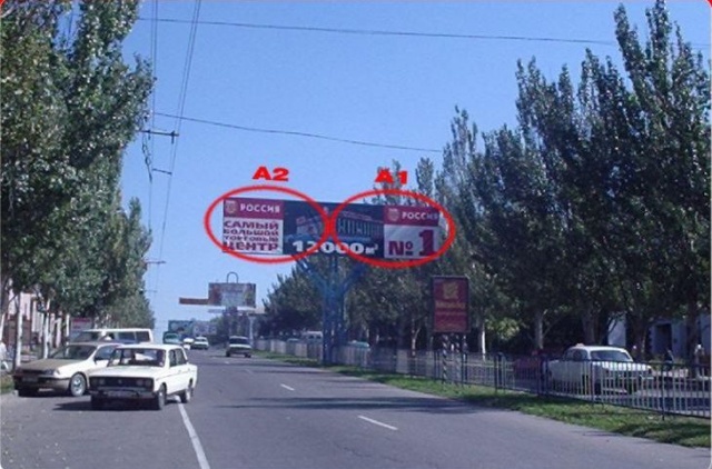 Щит 6x3, Луганск, ул. Советская, разделитель, памятник труженику Луганска, пл. А1